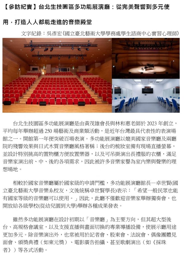 【參訪紀實】台北生技園區多功能展演廳:從完美聲響到多元使用,打造人人都能走進的音樂殿堂