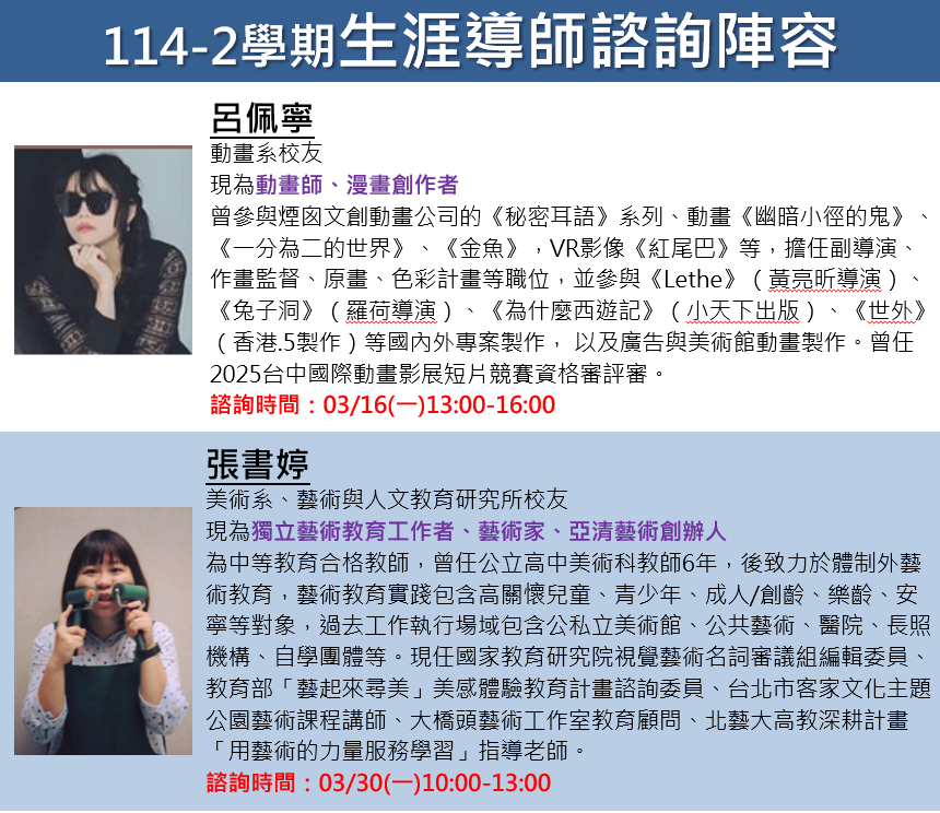 最近有創作卡關的感覺嗎?還是對念藝術有什麼出路感到迷茫?抑或單純想和學長姊聊聊?